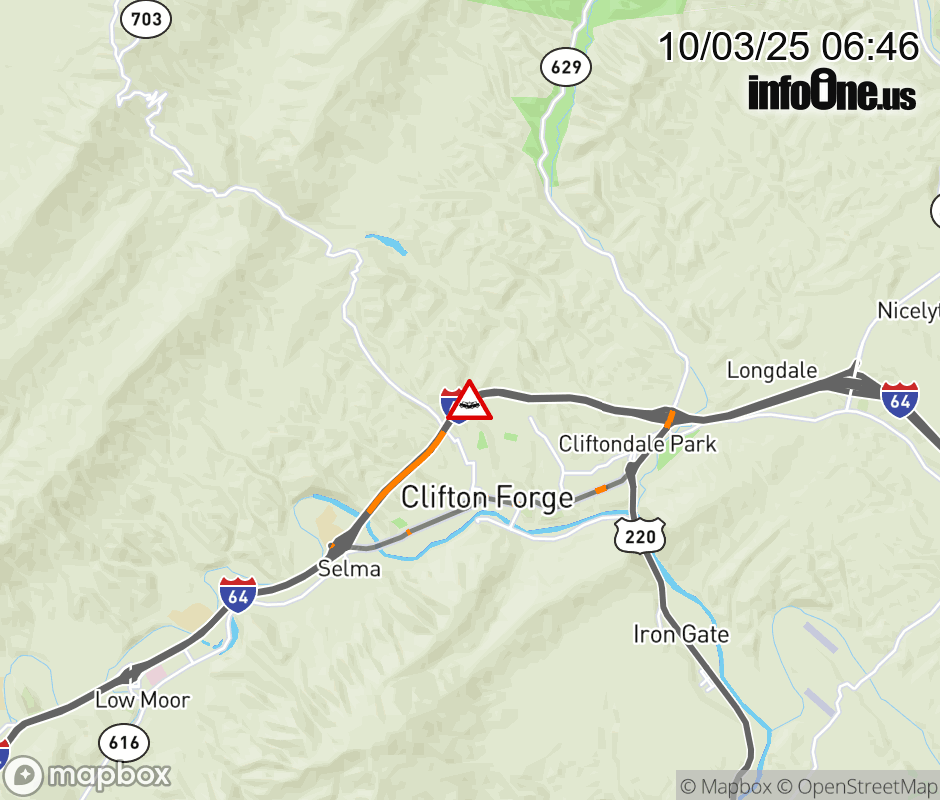 On I-64 East at mile marker 25.8 in the County of Alleghany, motorists can expect delays due to a vehicle crash. Updated: Fri 10/3/25 6:46 AM EDT ![]() Updated: Fri 10/3/25 6:46 AM EDT |