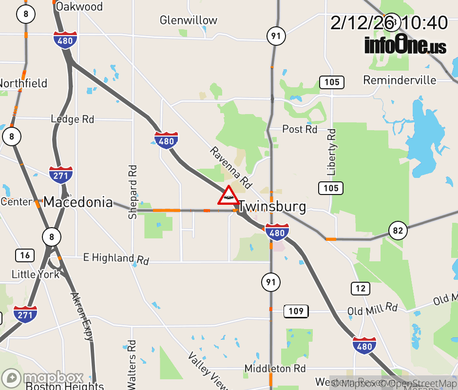 Expect lane closures on I-480/SR-14 West beyond SR-82/E Aurora Rd, due to a crash. ![]() |