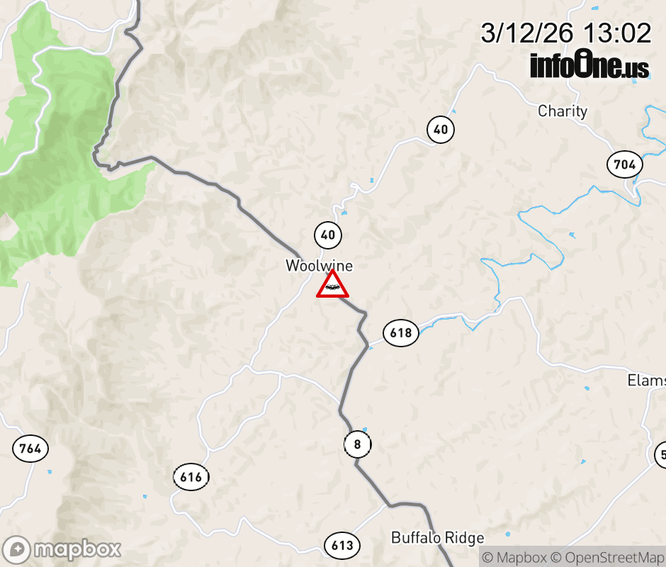 On VA-8 in the County of Patrick, in the vicinity of Rt. 9309N/S (Patrick County), motorists can expect delays due to a tractor trailer crash. All north lanes are closed. All south lanes are closed. ![]() |