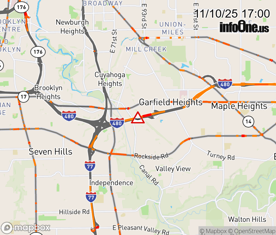 The 3 right lanes are blocked on I-480 West beyond Transportation Blvd/E 98th St, due to a crash. Updated: Mon 11/10/25 5:00 PM EST ![]() Updated: Mon 11/10/25 5:00 PM EST |