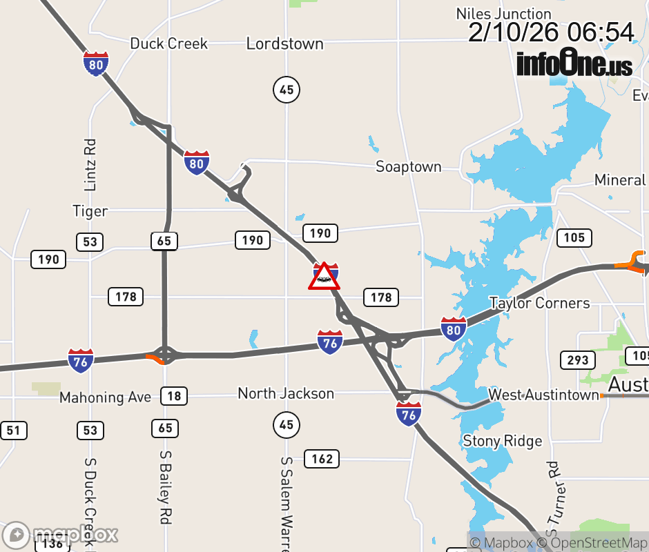 Expect lane closures on I-80 East (Ohio Turnpike) at I-76/80, due to a crash.