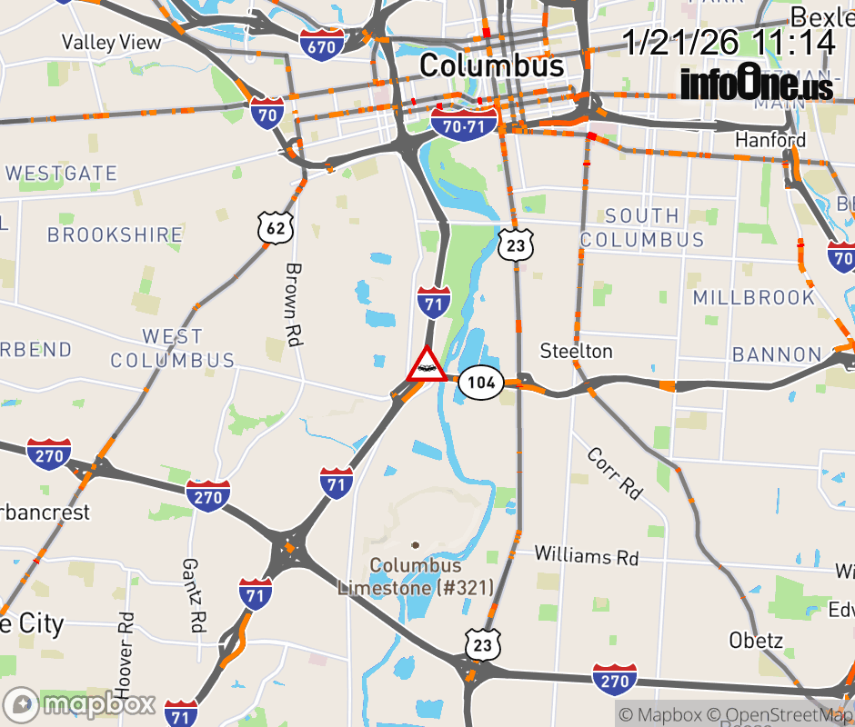 Expect lane closures on Ramp SR-104/Frank Rd to I-71 North, due to a crash. ![]() |