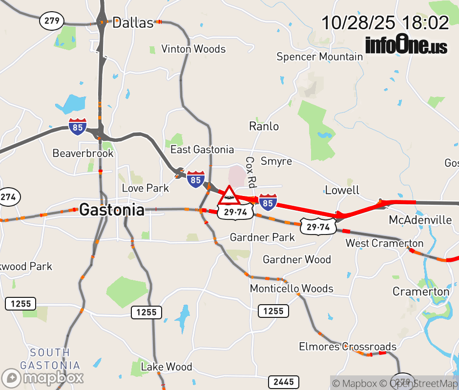 The right lane is closed past Exit 21 (Cox Rd) Updated: Tue 10/28/25 6:02 PM EDT ![]() Updated: Tue 10/28/25 6:02 PM EDT |