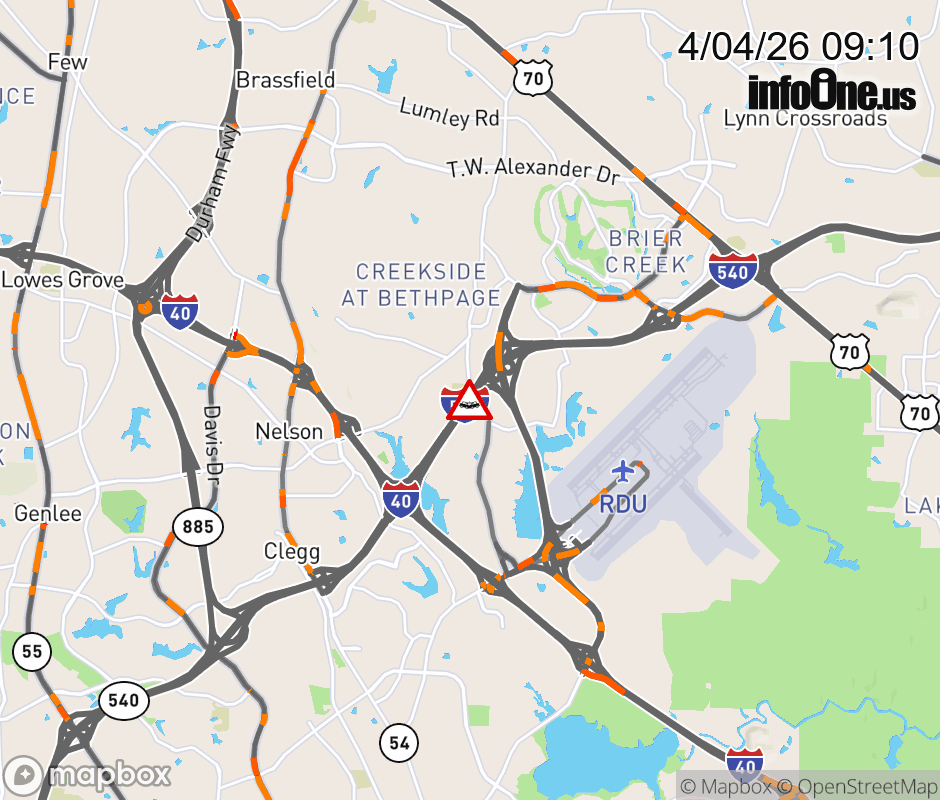 The right lane is closed before Exit 2 (Aviation Pkwy). ![]() |
