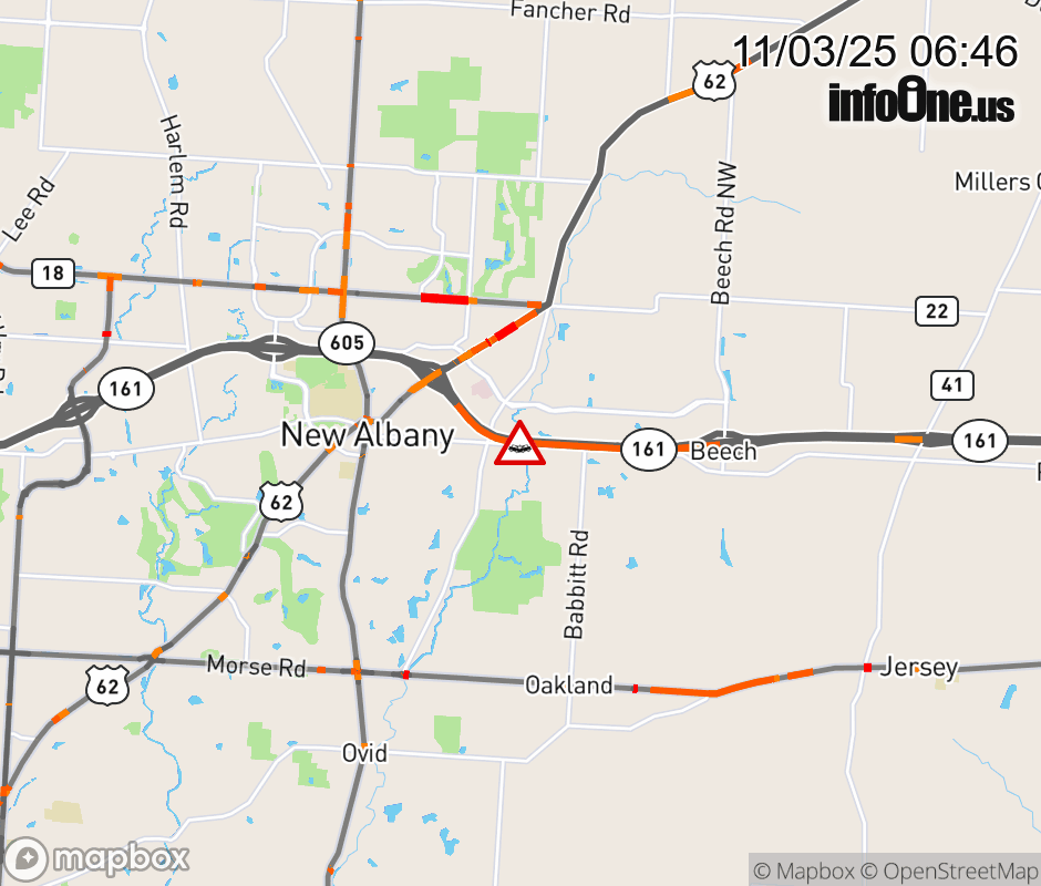 Expect lane closures on SR-161 East beyond US-62, due to a crash. Updated: Mon 11/3/25 6:46 AM EST ![]() |