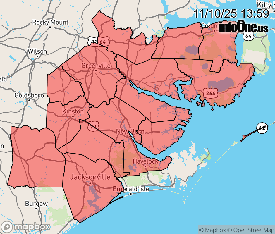 Canceled 11/11/25 12:36 AM Freeze Warning issued November 10 at 1:58PM EST until November 11 at 8:00AM EST by NWS Newport/Morehead City NC * WHAT... Sub-freezing temperatures as low as 28 expected. * WHERE... A portion of eastern North Carolina. * WHEN... From 2 AM to 8 AM EST Tuesday. * IMPACTS... Frost and freeze conditions could kill crops, other sensitive vegetation and possibly damage unprotected outdoor plumbing. ![]() |