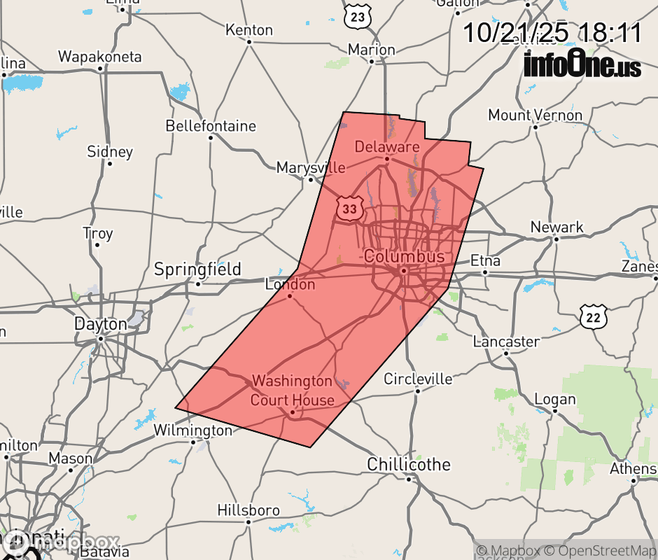 Canceled 10/21/25 6:45 PM Special Weather Statement issued October 21 at 6:10PM EDT by NWS Wilmington OH At 610 PM EDT, strong thunderstorms were located along a line extending from near Prospect to near West Jefferson to near Jamestown, moving east at 35 mph. HAZARD...Wind gusts up to 45 mph. SOURCE...Radar indicated. IMPACT...Gusty winds could knock down tree limbs and blow around unsecured objects. Locations impacted include... Columbus, Dublin, Westerville, Reynoldsburg, Grove City, Delaware, Upper Arlington, Gahanna, Hilliard, Marysville, Washington Court House, Worthington, Bexley, London, Jefferson, Powell, Groveport, Sunbury, Plain City, and West Jefferson. This includes the following Interstates... I-70 in Ohio between mile markers 75 and 110. I-71 in Ohio between mile markers 53 and 138. If outdoors, consider seeking shelter inside a sturdy building. To report hazardous weather conditions, go to our website at weather.gov/iln and submit your report via social media, when you can do so safely. ![]() |