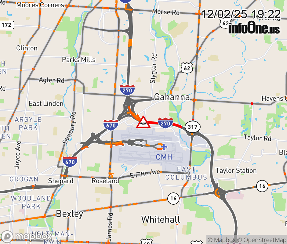 The right lane is blocked on I-270 North at US-62 East/Johnstown Rd, due to a crash. Updated: Tue 12/2/25 7:22 PM EST ![]() Updated: Tue 12/2/25 7:22 PM EST |