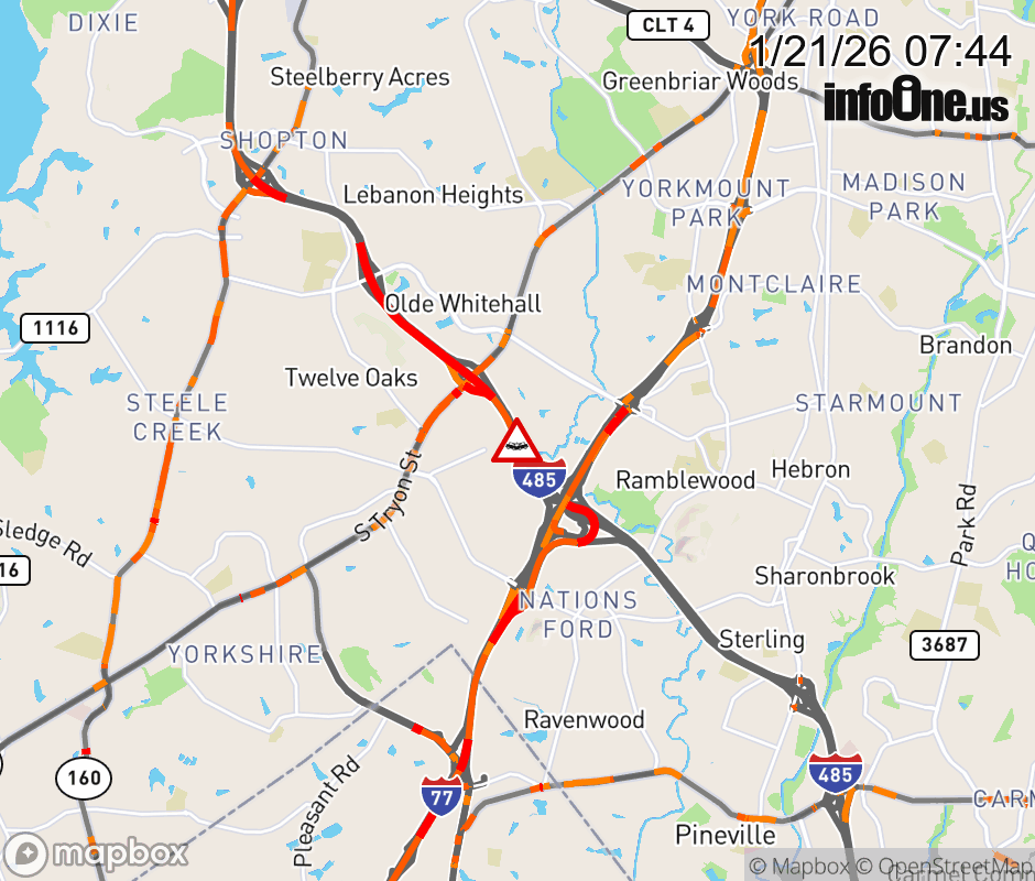 The two right lanes are closed past Exit 1 (S Tryon St.). Updated: Wed 1/21/26 7:44 AM EST ![]() Updated: Wed 1/21/26 7:44 AM EST |
