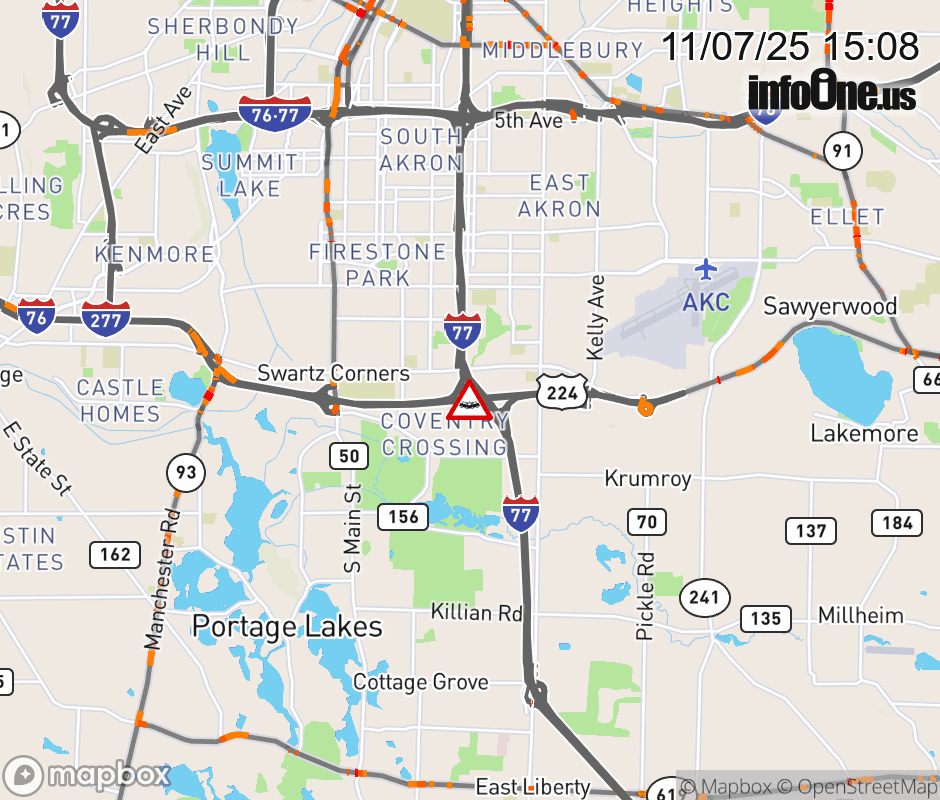 The right lane is blocked on I-277/US-224 East at I-77 South, due to a crash. Updated: Fri 11/7/25 3:08 PM EST ![]() Updated: Fri 11/7/25 3:08 PM EST |