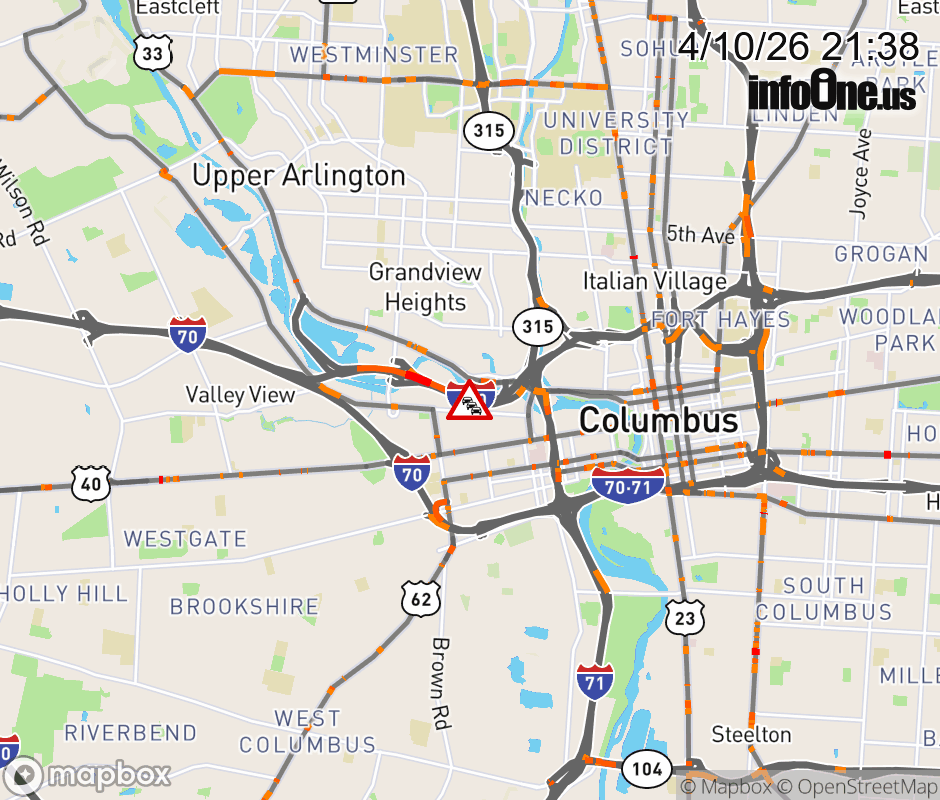 The 3 right lanes are blocked on I-670 West beyond SR-315 South, due to repairs/maintenance. ![]() |