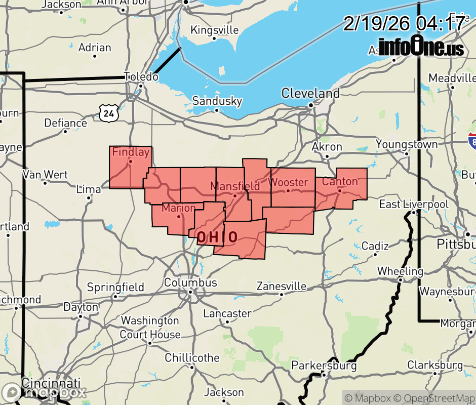 Canceled 2/19/26 11:00 AM Dense Fog Advisory issued February 19 at 4:16AM EST until February 19 at 11:00AM EST by NWS Cleveland OH * WHAT... Visibility less than one half mile at times in dense fog. * WHERE... Portions of north central, northeast, and northwest Ohio. * WHEN... Until 11 AM EST this morning. * IMPACTS... Low visibility could make driving conditions hazardous. ![]() |