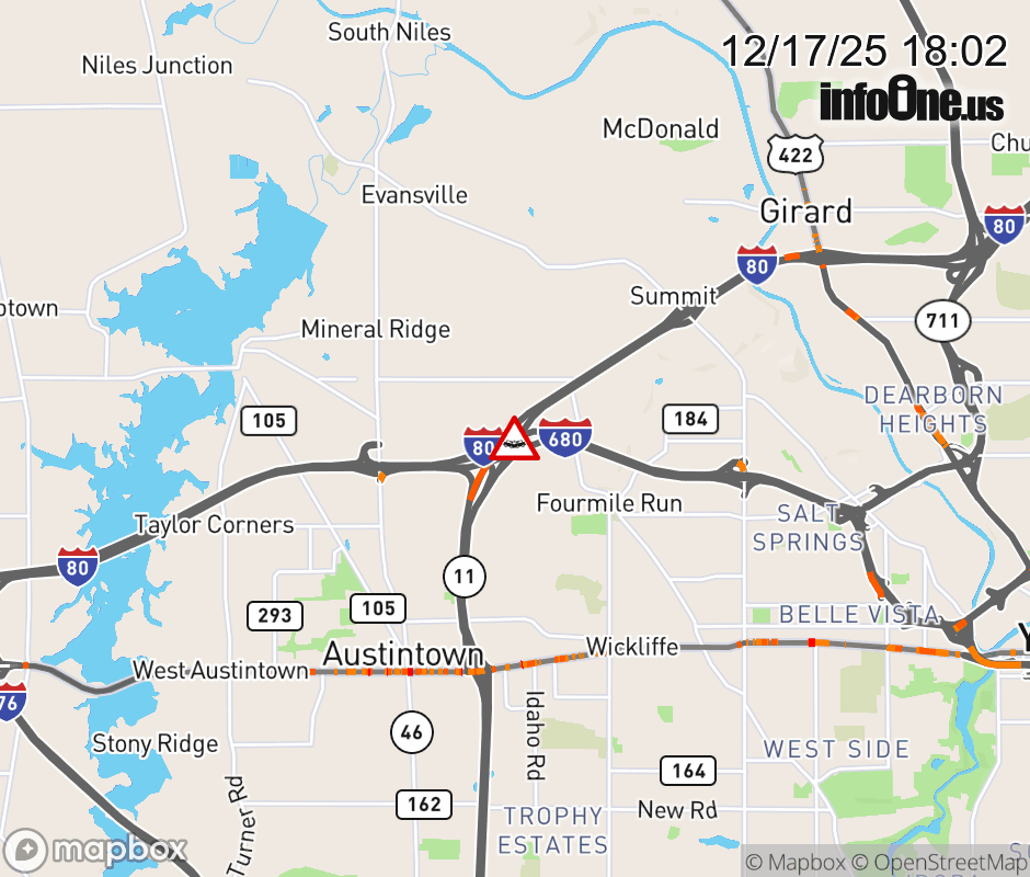 Ramp to SR-11 South/Canfield from I-680 North closed because of a crash. Use alternate route. ![]() |
