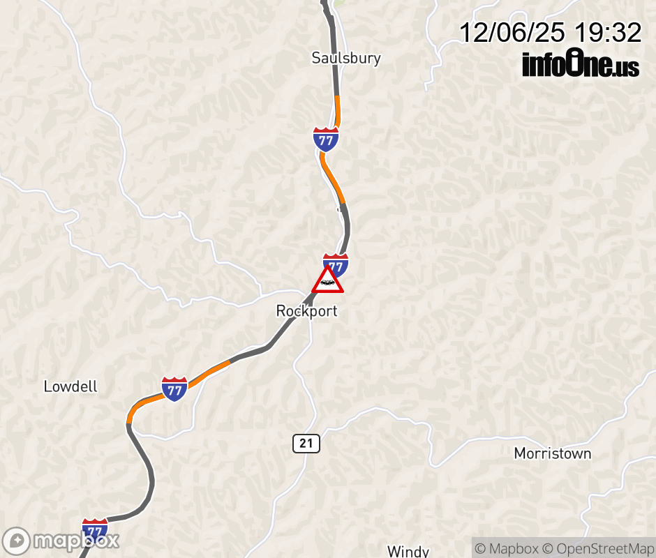 Vehicle Crash on I-77N at Mile Marker 162.0. The northbound road is closed. Updated: Sat 12/6/25 7:32 PM EST ![]() Updated: Sat 12/6/25 7:32 PM EST |