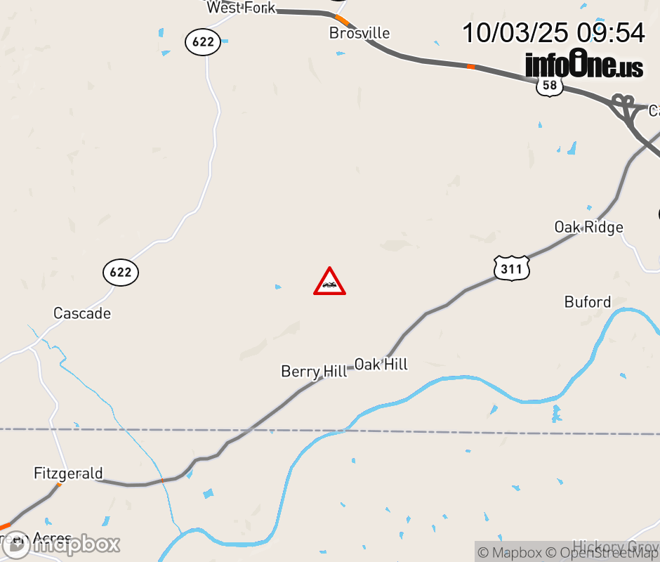 On Rt. 862 in the County of Pittsylvania, in the vicinity of Kyle Rd; Rt. 962E/W (Pittsylvania County), motorists can expect delays due to a disabled tractor trailer. All north lanes are closed. All south lanes are closed. ![]() |