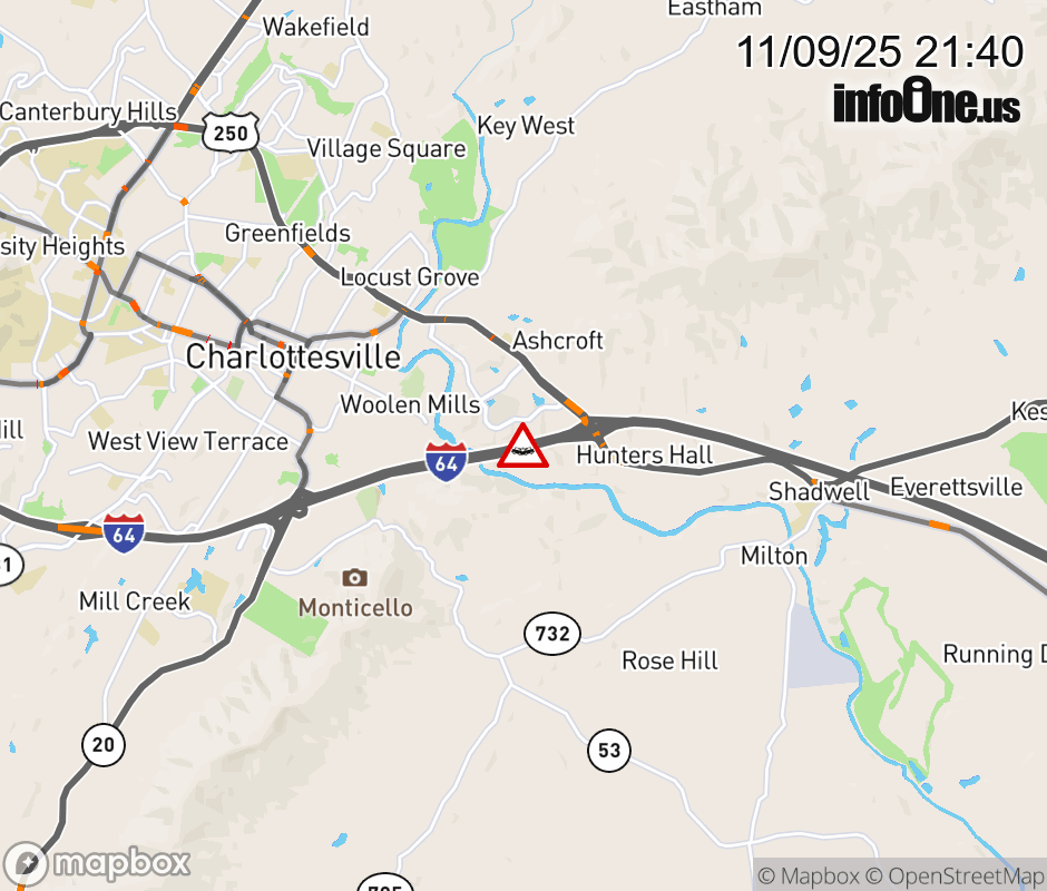 On I-64 at mile marker 123.9 in the County of Albemarle, motorists can expect delays due to a vehicle crash. The west left shoulder and left lane are closed. Updated: Sun 11/9/25 9:40 PM EST ![]() Updated: Sun 11/9/25 9:40 PM EST |
