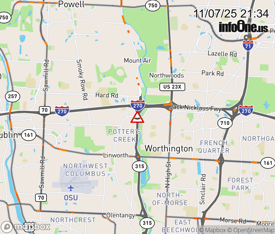 The right lane is blocked on Ramp I-270 West to SR-315 South, due to a crash. ![]() |
