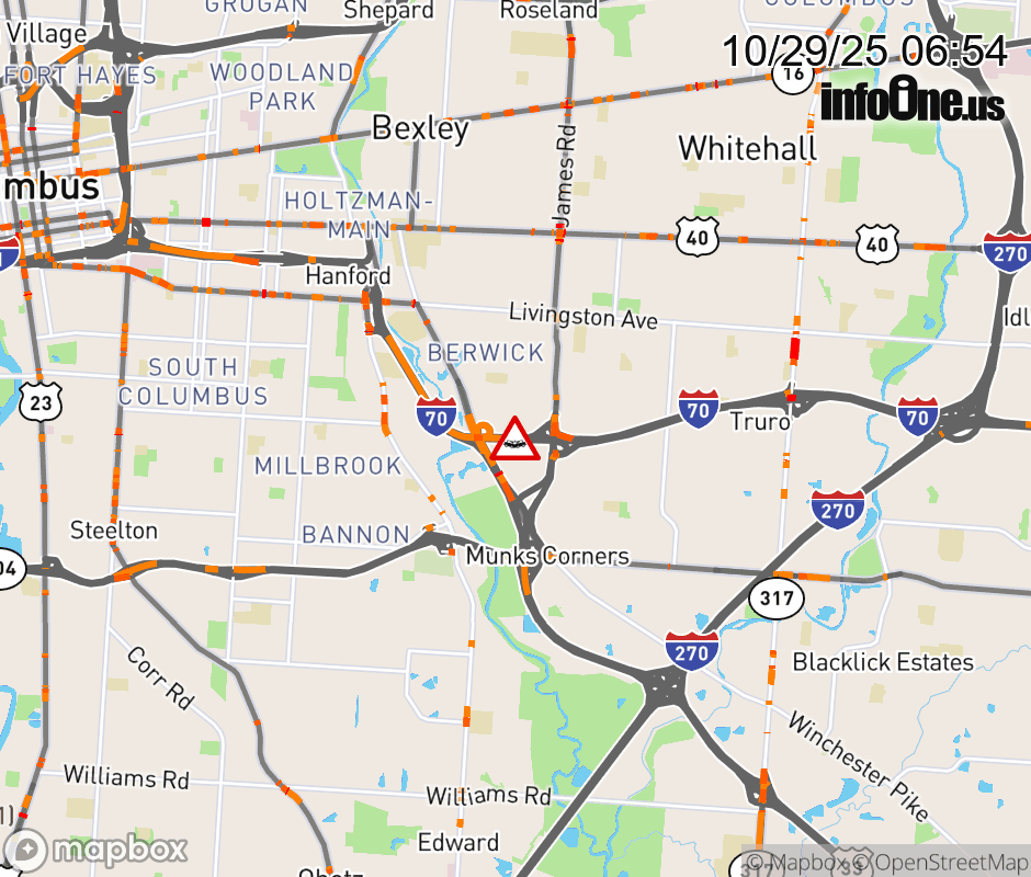 The left shoulder is blocked on I-70 West beyond US-33, due to a crash. ![]() |