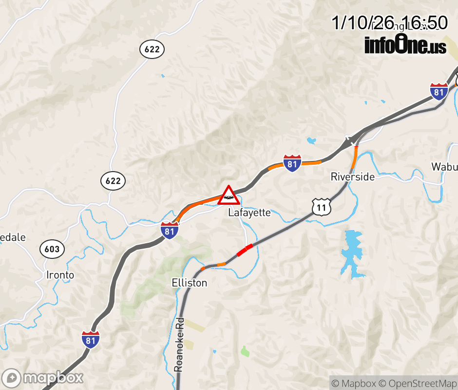 On I-81 North at mile marker 129.5 in the County of Montgomery, motorists can expect delays due to a tractor trailer crash. Updated: Sat 1/10/26 4:50 PM EST ![]() Updated: Sat 1/10/26 4:50 PM EST |