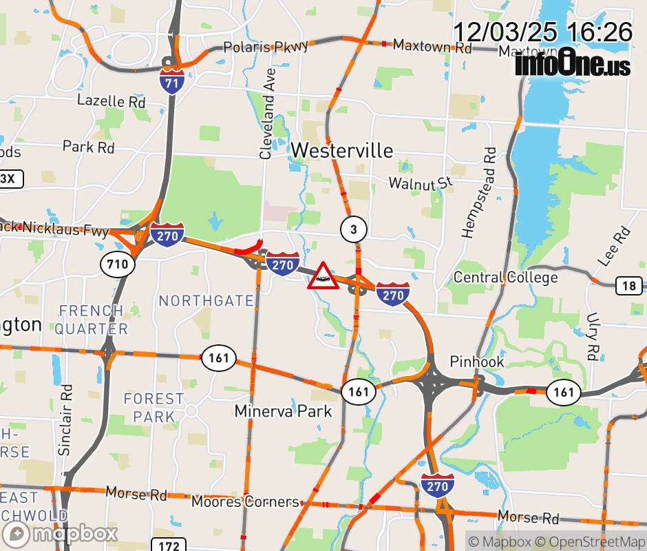 The left lane is blocked on I-270 West at SR-3, due to a crash. Updated: Wed 12/3/25 4:26 PM EST ![]() Updated: Wed 12/3/25 4:26 PM EST |