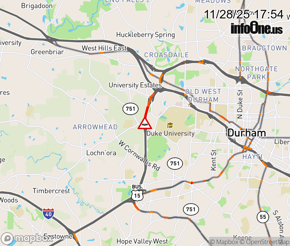 The left lane is closed near Exit 107 (NC-751). ![]() |