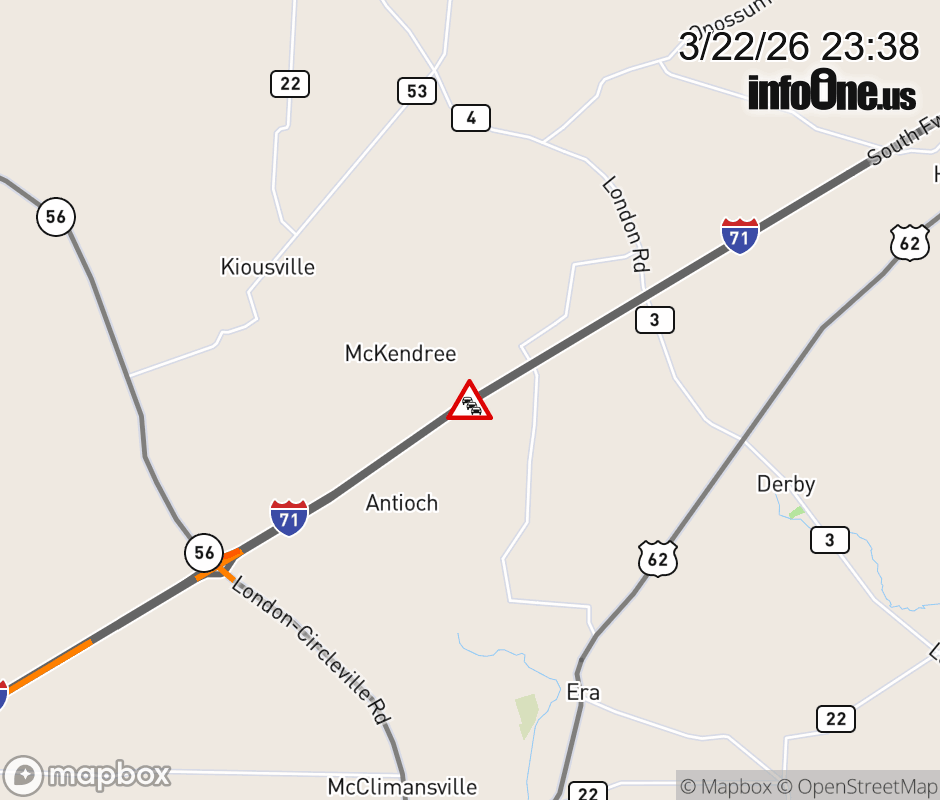 Canceled 3/23/26 12:46 AM Location: I-71 South at MM 87, OH Traffic hazard.