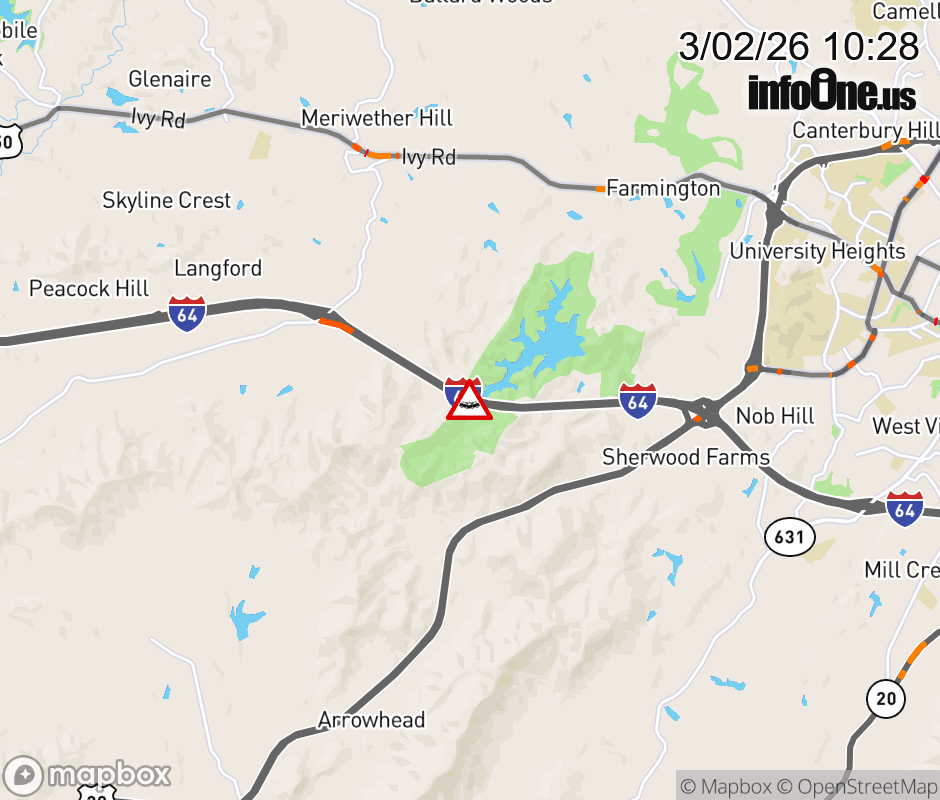 On I-64 at mile marker 116 in the County of Albemarle, motorists can expect delays due to a vehicle crash. The east right shoulder is closed. ![]() |