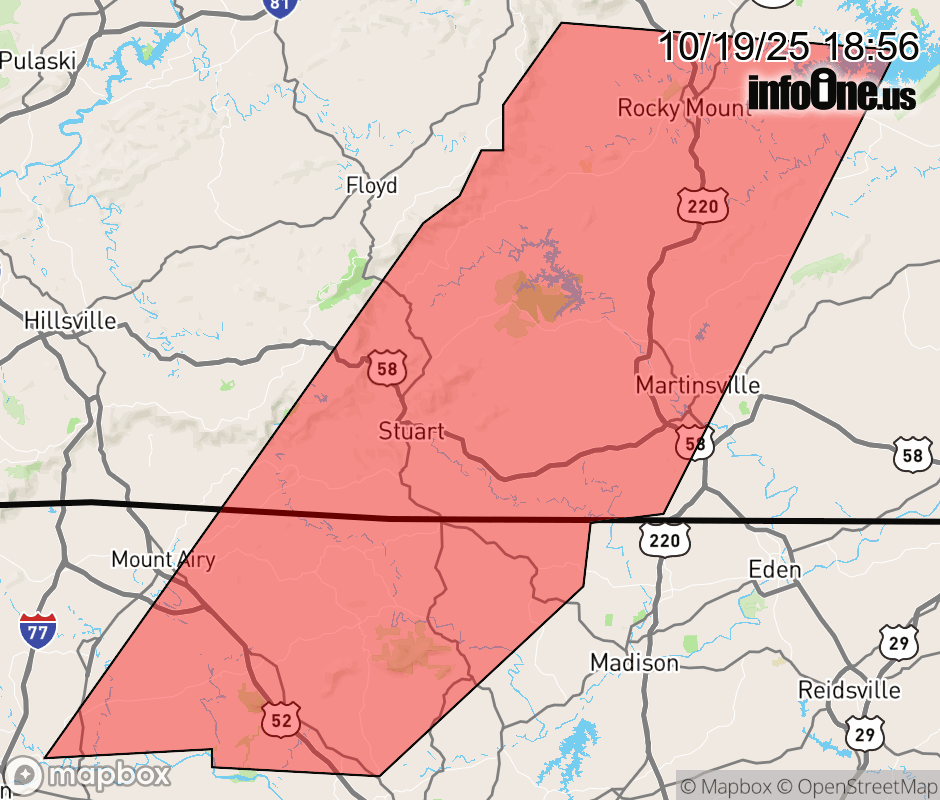 Canceled 10/19/25 7:30 PM Special Weather Statement issued October 19 at 6:55PM EDT by NWS Blacksburg VA At 655 PM EDT, Doppler radar was tracking strong thunderstorms along a line extending from near Rocky Mount to Rockford. Movement was east at 30 mph. HAZARD...Wind gusts up to 40 mph. SOURCE...Radar indicated. IMPACT...Gusty winds could knock down tree limbs and blow around unsecured objects. Locations impacted include... Martinsville... Rocky Mount... Fairview... Pilot Mountain... Stuart... Danbury... and Ferrum. ![]() |