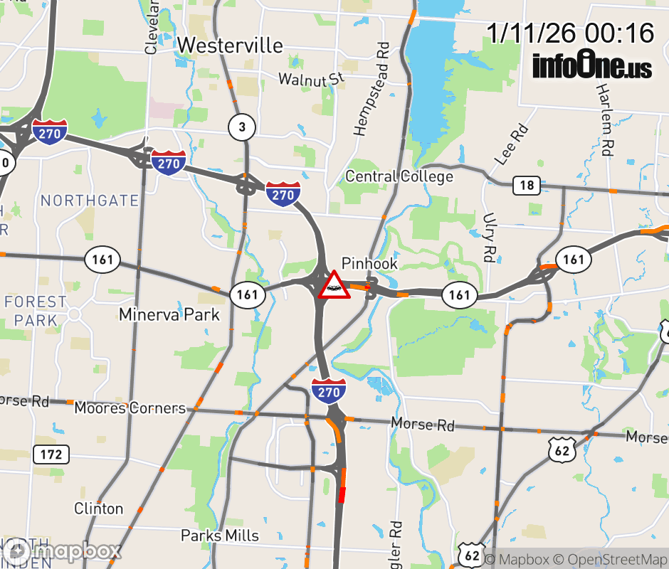 The left lane is blocked on SR-161 East at I-270 North, due to a crash. ![]() |