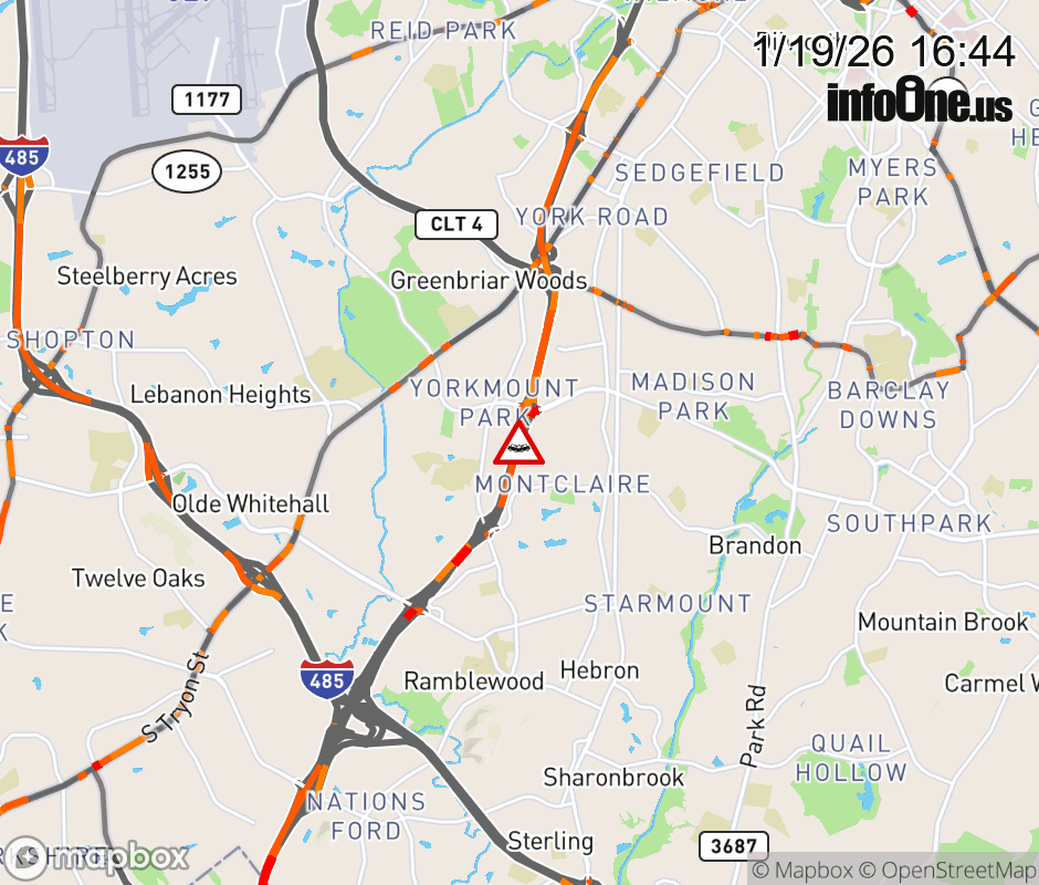 The left shoulder is closed at Exit 5 (Tyvola Rd). Updated: Mon 1/19/26 4:44 PM EST ![]() Updated: Mon 1/19/26 4:44 PM EST |