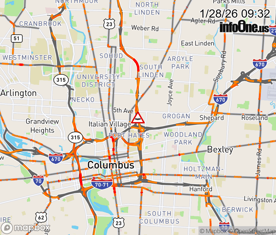 The right shoulder is blocked on I-71 North beyond I-670 West, due to a crash. Updated: Wed 1/28/26 9:32 AM EST ![]() Updated: Wed 1/28/26 9:32 AM EST |