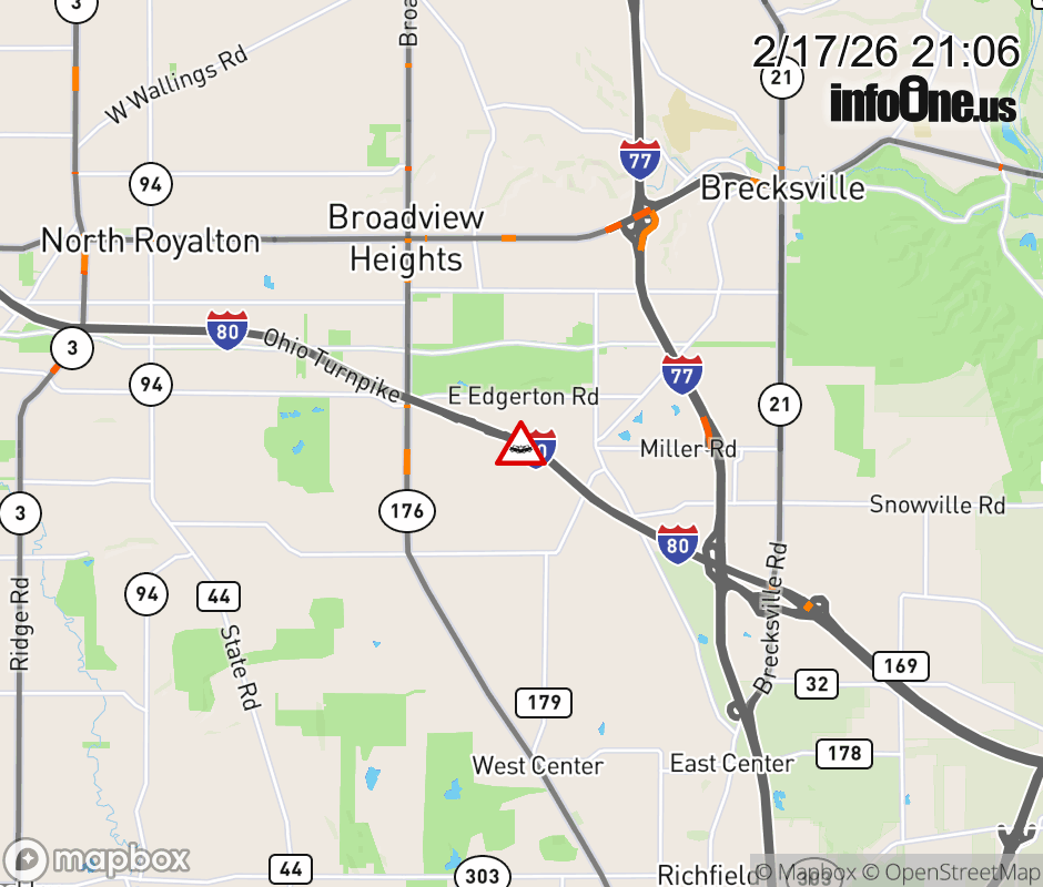 Canceled 2/17/26 9:10 PM Location: I-80 East (Ohio Turnpike) at MM 170.5, OH Accident.