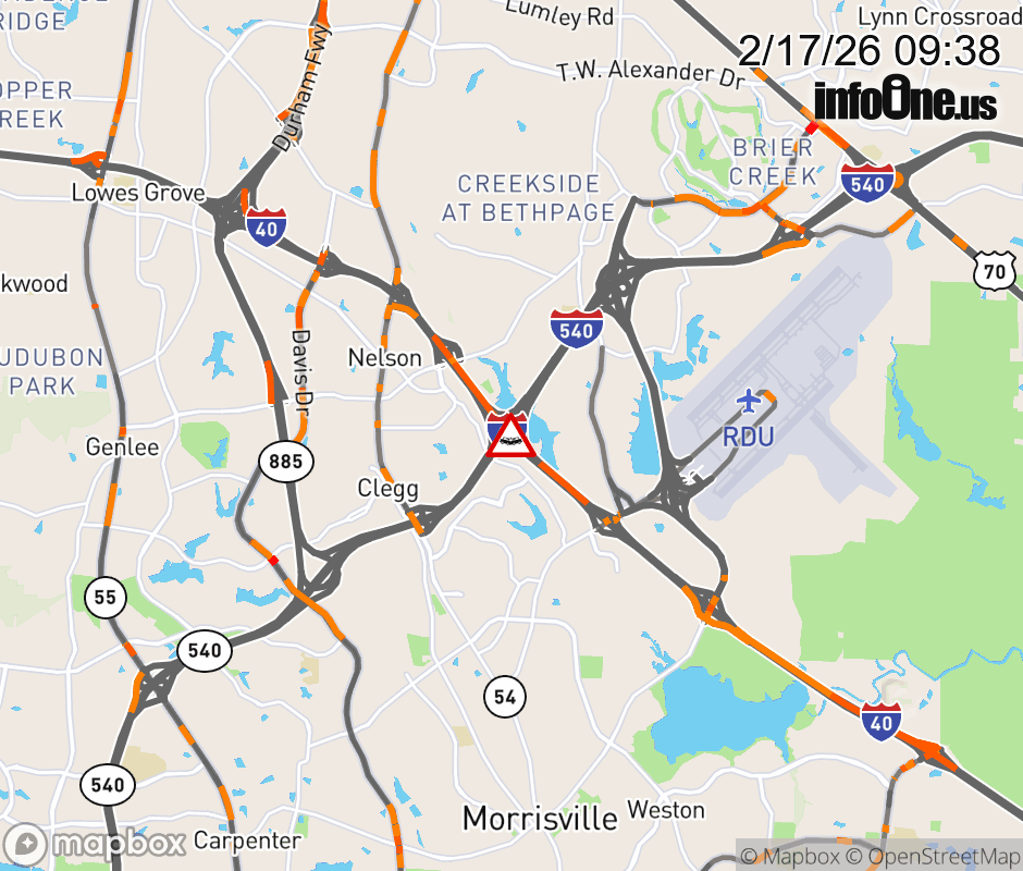 The right shoulder is closed at Exit 283 (I-540). Updated: Tue 2/17/26 9:38 AM EST ![]() Updated: Tue 2/17/26 9:38 AM EST |