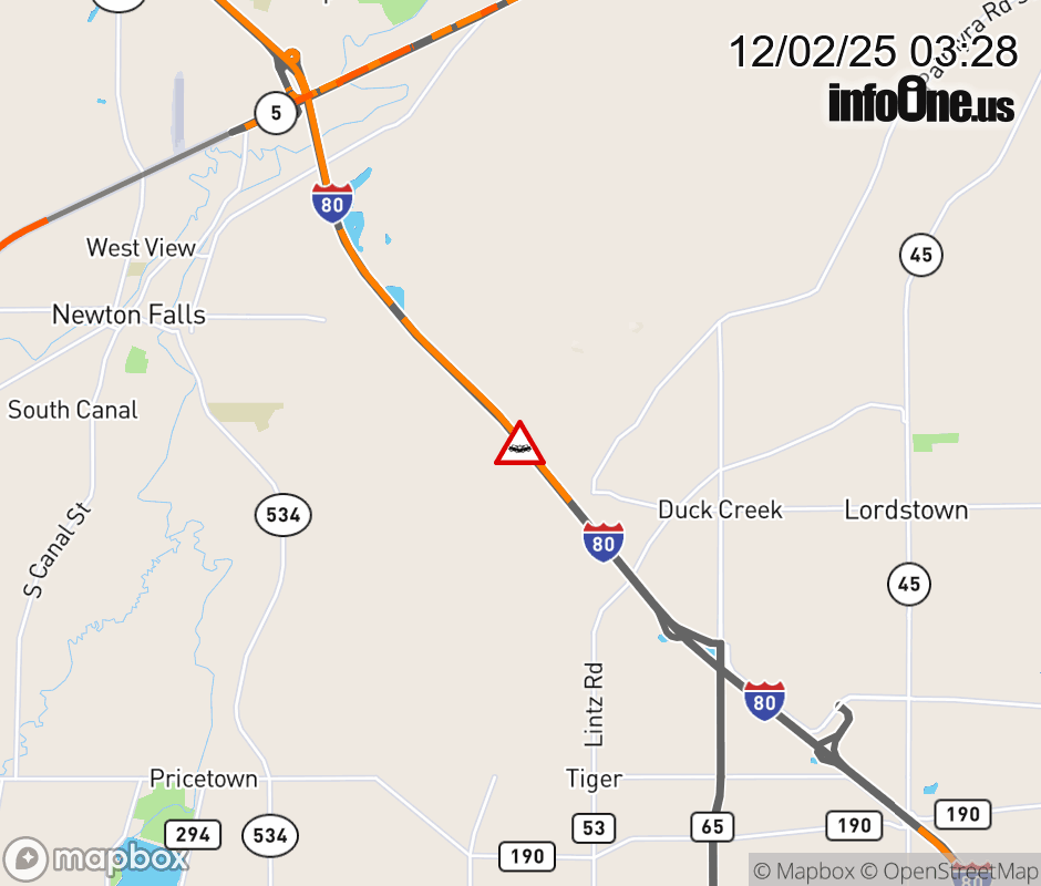 Expect lane closures on I-80 East (Ohio Turnpike) beyond SR-5, due to a crash. ![]() |