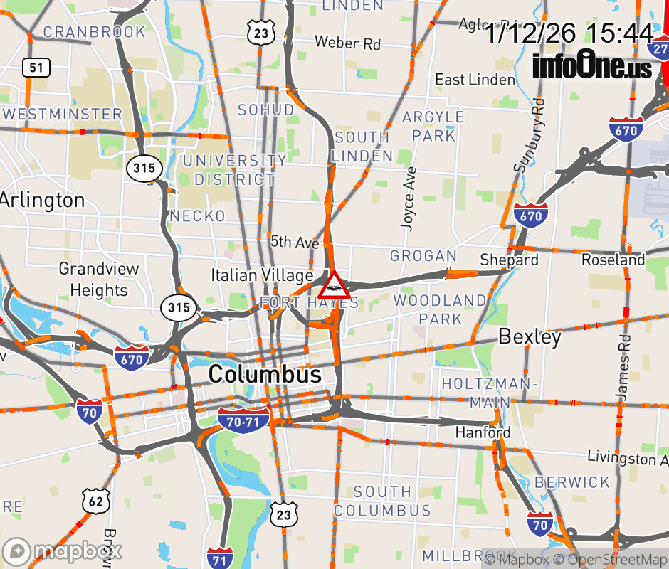 The right lane is blocked on I-71 North beyond I-670 West, due to a crash. ![]() |
