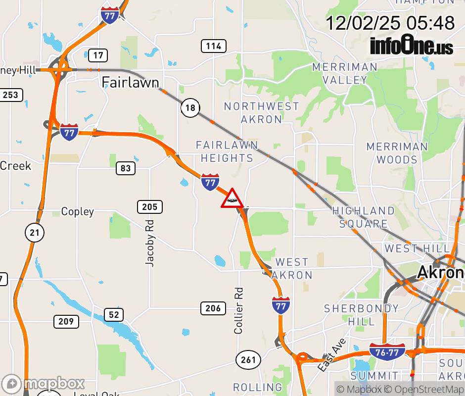The right lane is blocked on I-77 North beyond White Pond Dr/Mull Ave, due to a crash. Updated: Tue 12/2/25 5:48 AM EST ![]() Updated: Tue 12/2/25 5:48 AM EST |