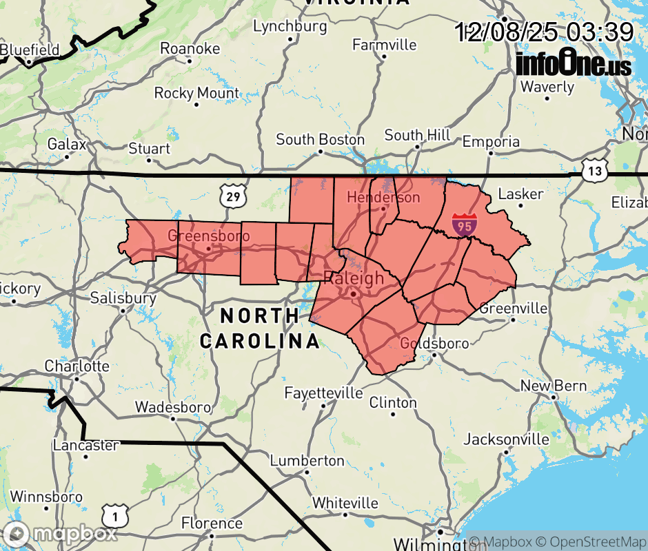 Winter Weather Advisory issued December 8 at 3:37AM EST until December 9 at 12:00PM EST by NWS Raleigh NC * WHAT... Snow expected. Total snow accumulations ranging from around half inch across the Triad and Triangle regions and up to 2 inches near the NC/VA border. * WHERE... Northern Piedmont and northern Coastal Plain. * WHEN... From 7 AM this morning to noon EST Tuesday. * IMPACTS... Plan on slippery road conditions. In addition, any remaining snow or moisture on area roads and sidewalks will freeze, producing hazardous travel into Tuesday morning. * ADDITIONAL DETAILS... Temperatures are expected to fall rapidly this evening, falling into the teens to lower 20s Tuesday morning. ![]() |