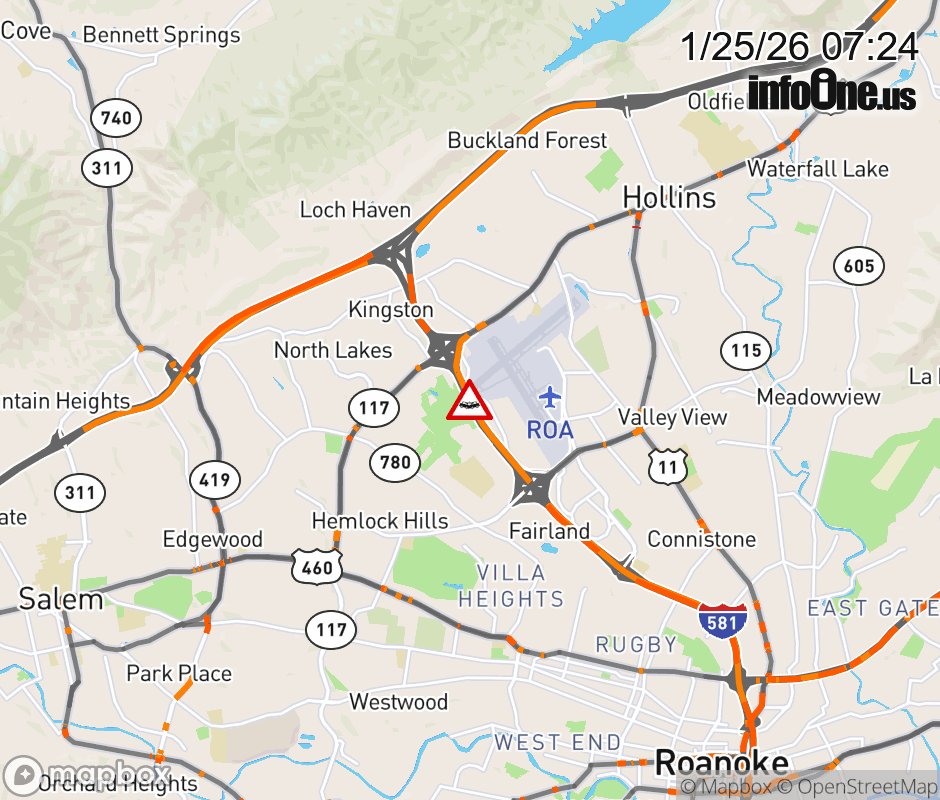 On I-581 North at mile marker 5 in the City of Roanoke, motorists can expect delays due to a vehicle crash. Updated: Sun 1/25/26 7:24 AM EST ![]() Updated: Sun 1/25/26 7:24 AM EST |