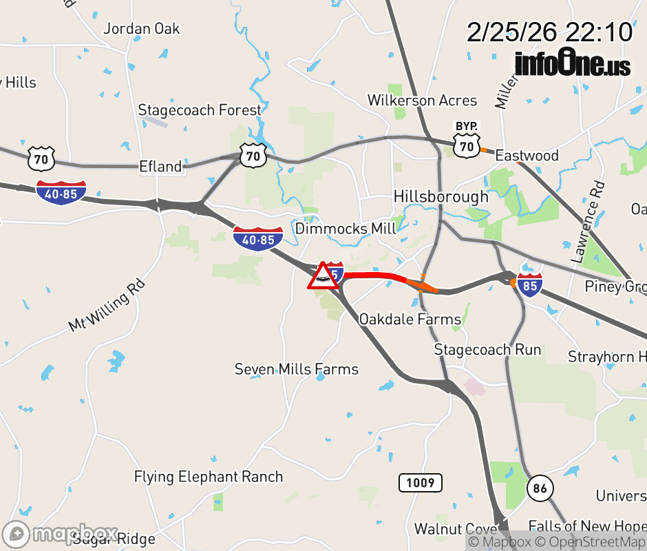 The road is closed near Exit 163 ( I-40). Updated: Wed 2/25/26 10:10 PM EST ![]() Updated: Wed 2/25/26 10:10 PM EST |