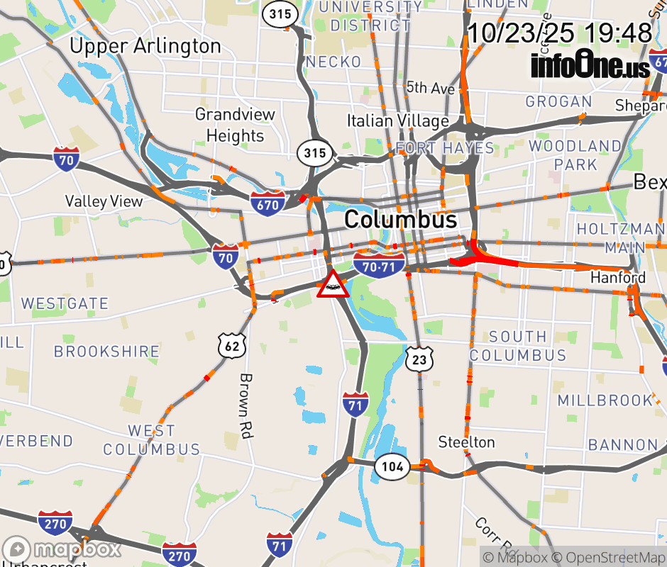 The right lane is blocked on I-70 East at SR-315 North, due to a crash. ![]() |
