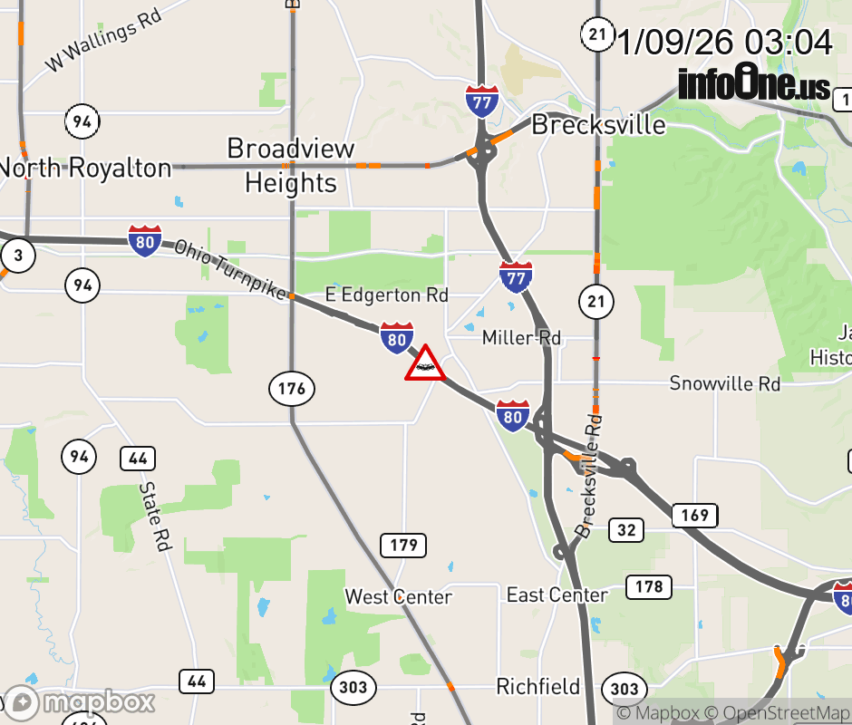 Expect lane closures on I-80 West (Ohio Turnpike) beyond I-77, due to a crash. ![]() |