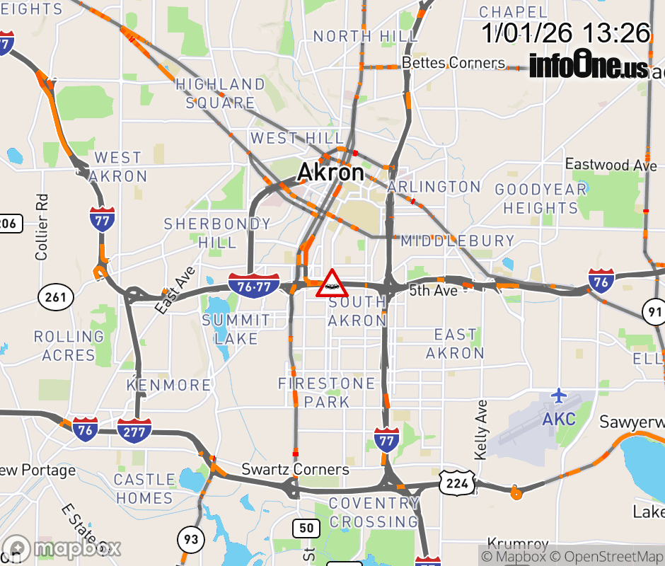 The right lane is blocked on I-76 West/I-77 North beyond SR-8, due to a crash. ![]() |