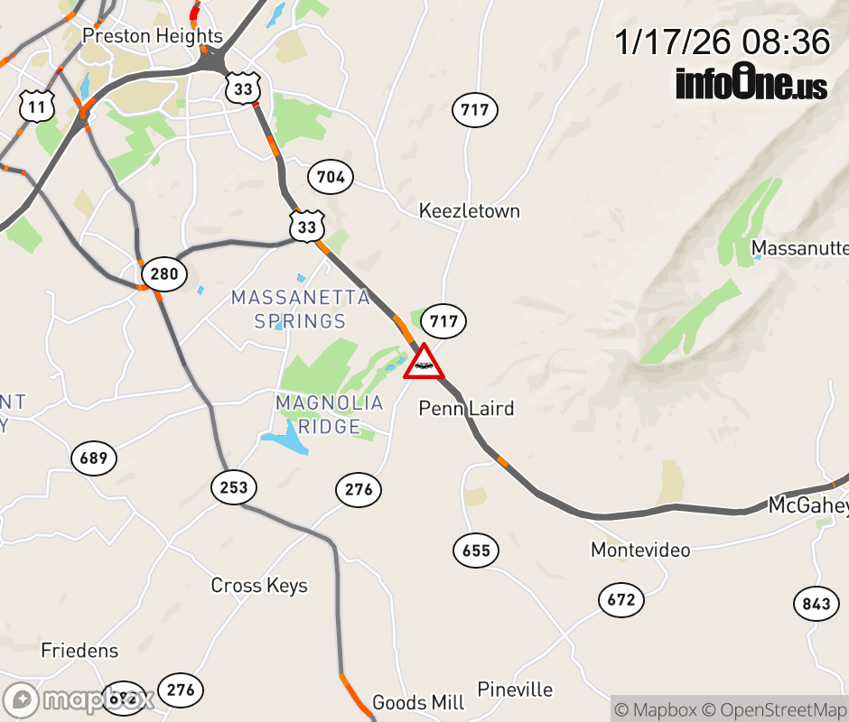 On Rt. 620 in the County of Rockingham, in the vicinity of Spotswood Trl; US-33W, motorists can expect delays due to a vehicle crash. All north lanes are closed. All south lanes are closed. ![]() |