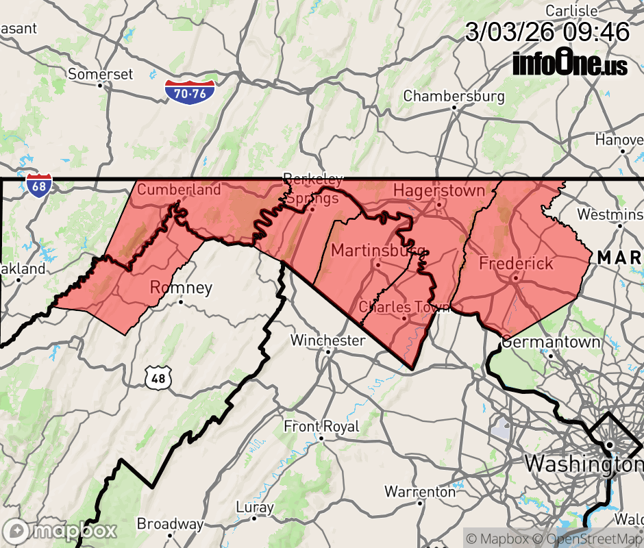 Canceled 3/3/26 12:46 PM Winter Weather Advisory issued March 3 at 9:45AM EST until March 3 at 1:00PM EST by NWS Baltimore MD/Washington DC * WHAT... Freezing rain. Additional ice accumulations up to a few hundredths of an inch, especially on elevated surfaces. * WHERE... Portions of north central and western Maryland and eastern and panhandle West Virginia. * WHEN... Until 1 PM EST this afternoon. * IMPACTS... Elevated surfaces such as decks, stairs, and bridges may be icy in some locations. * ADDITIONAL DETAILS... Precipitation will taper off and temperatures will rise above freezing by midday today. ![]() |