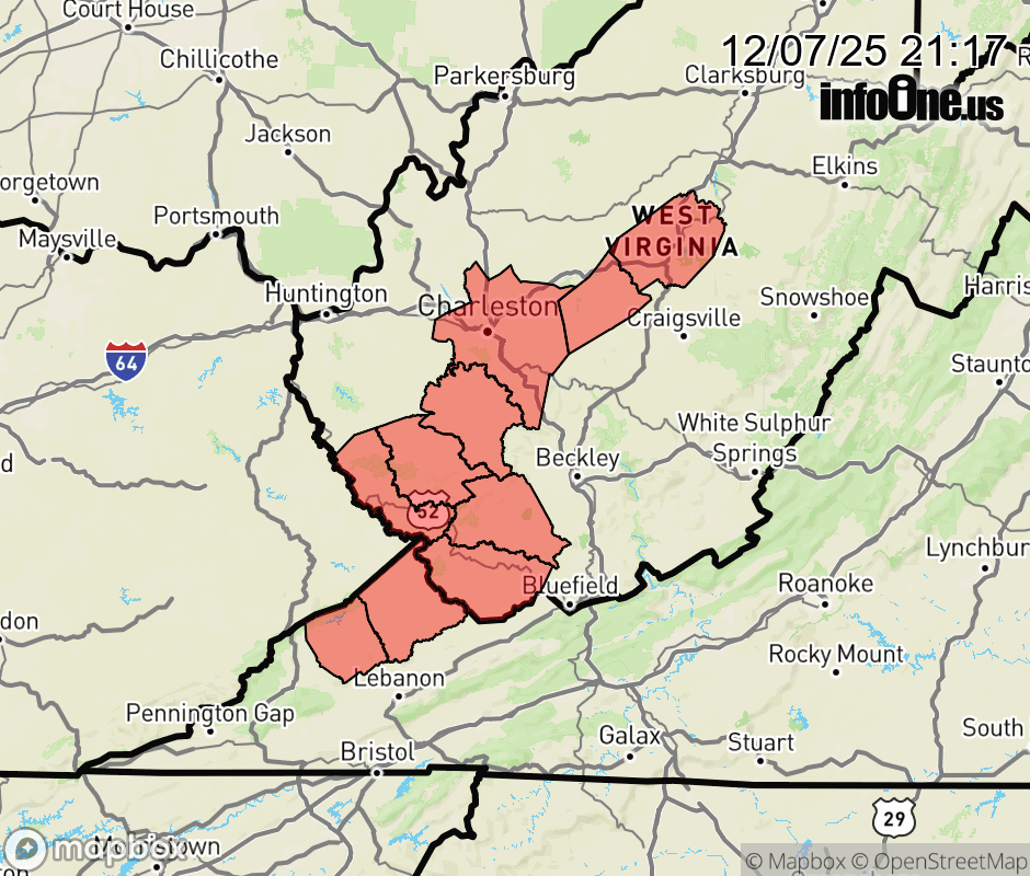 Canceled 12/8/25 1:07 AM Winter Weather Advisory issued December 7 at 9:16PM EST until December 8 at 9:00PM EST by NWS Charleston WV * WHAT... Snow expected. Total snow accumulations between 1 and 3 inches. * WHERE... Portions of southwest Virginia and central and southern West Virginia. * WHEN... From 1 AM to 9 PM EST Monday. * IMPACTS... Roads, and especially bridges and overpasses, will likely become slick and hazardous. Plan on slippery road conditions. The hazardous conditions could impact the Monday morning and evening commutes. * ADDITIONAL DETAILS... Localized totals of up to 4 inches could occur. ![]() |