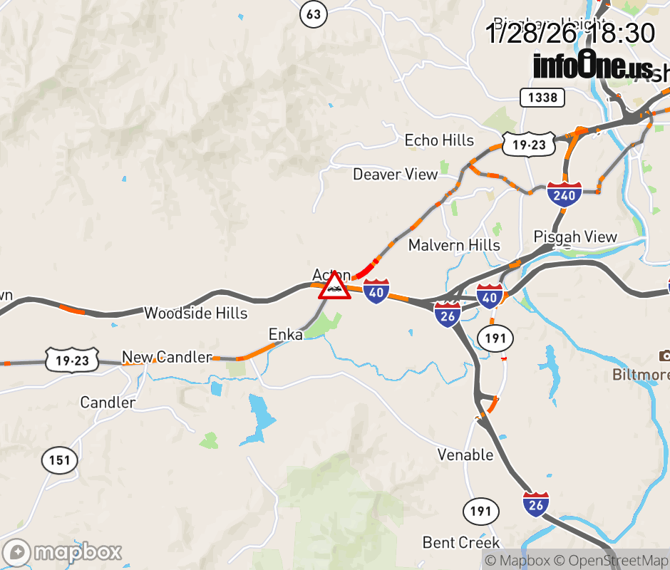 The left lane is closed after Old Haywood Road. ![]() Updated: Wed 1/28/26 6:30 PM EST |