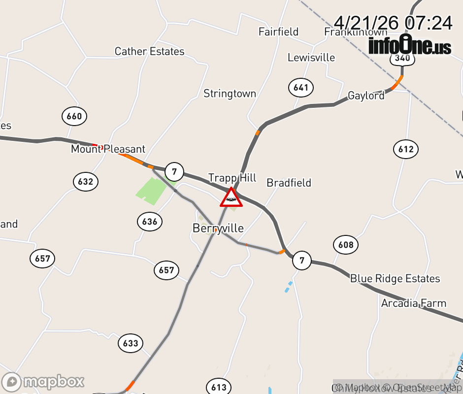 On US-340 in the County of Clarke, in the vicinity of the ramp, motorists can expect delays due to a vehicle crash. The north right shoulder is closed. Updated: Tue 4/21/26 7:24 AM EDT ![]() Updated: Tue 4/21/26 7:24 AM EDT |