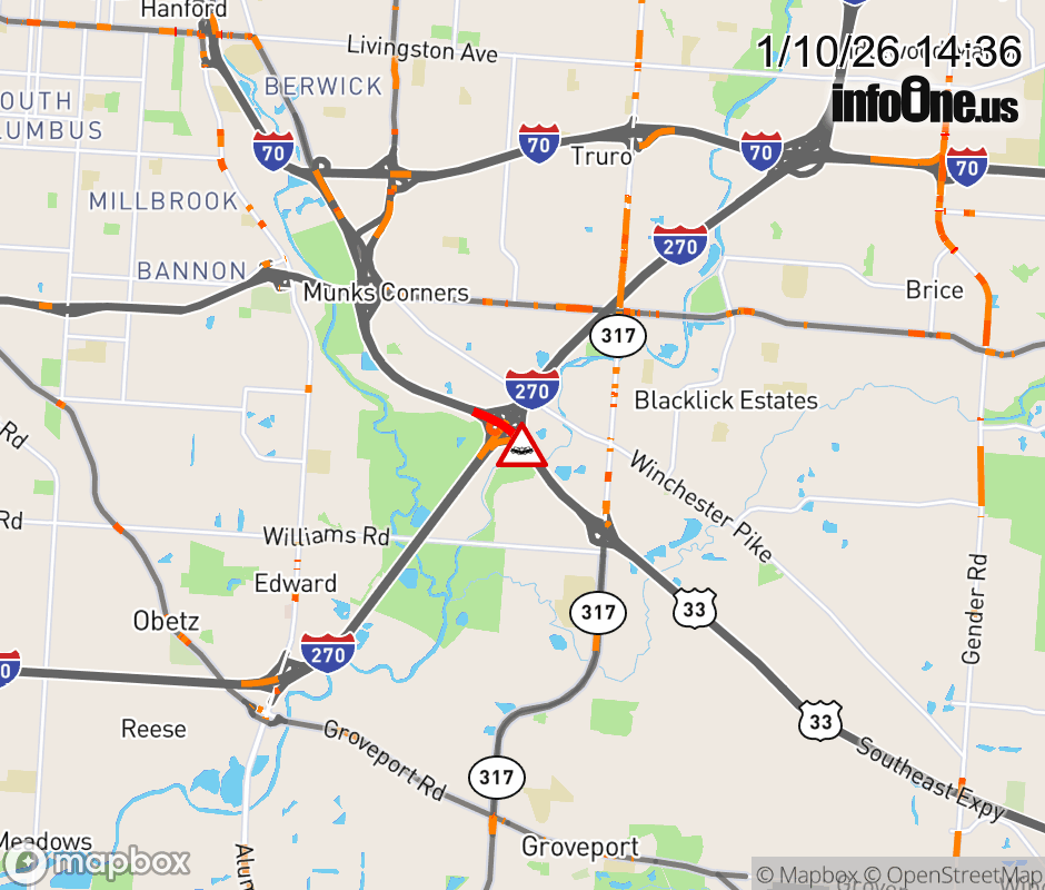 The left lane is blocked on US-33 East at I-270 North, due to a crash. Updated: Sat 1/10/26 2:36 PM EST ![]() Updated: Sat 1/10/26 2:36 PM EST |
