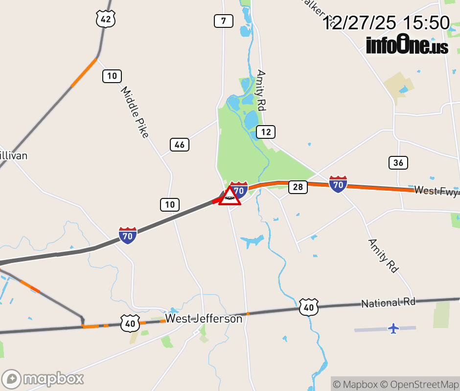 The right lane is blocked on I-70 East beyond SR-142/Plain City, due to a crash. ![]() |