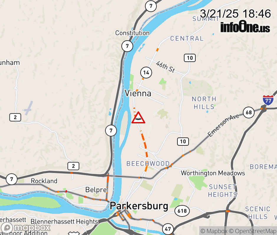In Wood County there is a Vehicle Crash on WV-14 at Mile Marker 16.7. Area of 1100 Grand Central Ave in Vienna. ![]() |